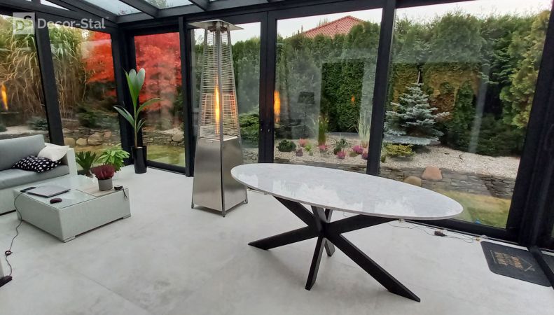 Stoły z podstawą stalową i blatem z granitu