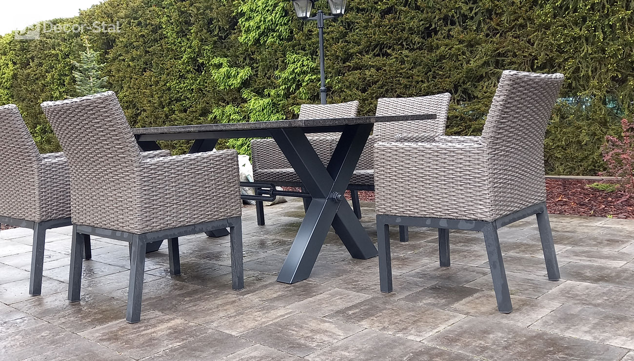 Orlando to stół ogrodowy stworzony do wielkiego grillowania. Bardzo mocna konstrukcja sprawia wrażenie ciężkiego stołu. Podstawa tego stołu jest wykonana z profilu 10x10 a w centralnym miejscu ma zamocowaną śrubę rzymską. Podstawę oferujemy w wymiarze 165x70cm oraz 210x70cm. Blaty granitowe dostępne w grubościach 2cm i 3cm.